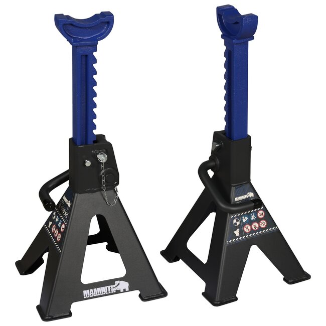 Deze set Mammuth assteunen van 12 ton is geschikt voor middelzware tot zwaardere voertuigen, zoals landbouwmachines of bedrijfswagens. Met een draagvermogen van 12 ton per paar zijn deze steunbokken ideaal voor professioneel gebruik.Â