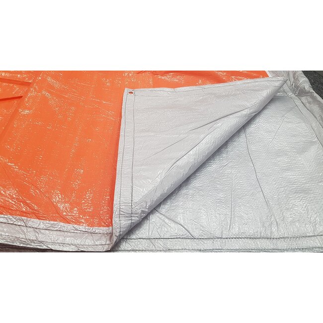 PE isolatie afdekzeil 6x8mtr 250gr/m² in de kleur Oranje. Uitermate geschikt om vorstgevoelige bouwmaterialen (zoals b.v. gestort beton) af te schermen tijdens de winterperiode.